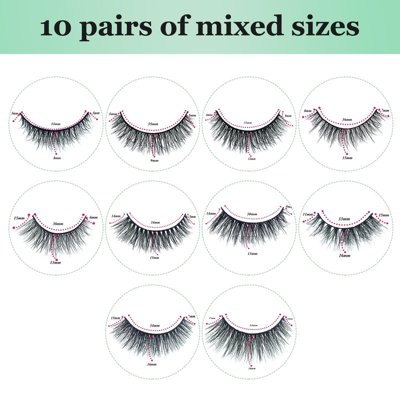 - Different styles Options: Includes 10 styles of eyelash packs with various styles that can be trimmed to desired size. Wispy, cat eye, and fluffy lashes offer stylish and soft looks for daily wear.