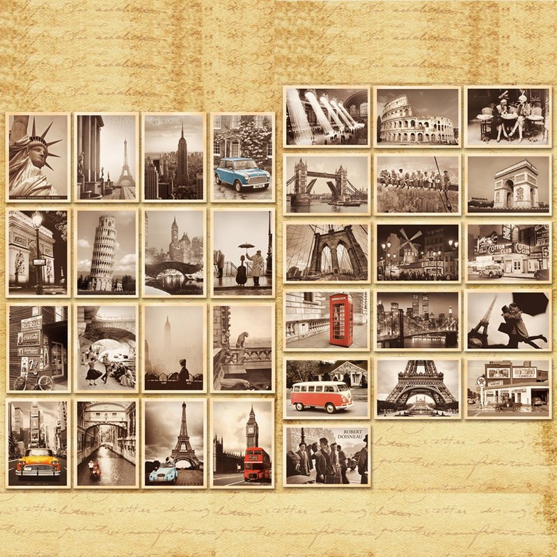 - Package contains 2 sets postcard(64pcs), including 32 old beautiful pictures from the world famous citie.