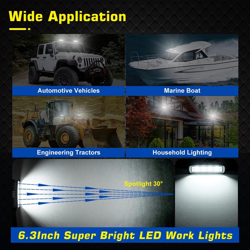 - Widely Application : Perfect for deck Marine light, led lighting, and work space applications. Also for various indoor and outdoor, off-road SUV, 4WD, UTV, ATV, truck, pickup, tractor, military, mining, port utility, heavy equipment.