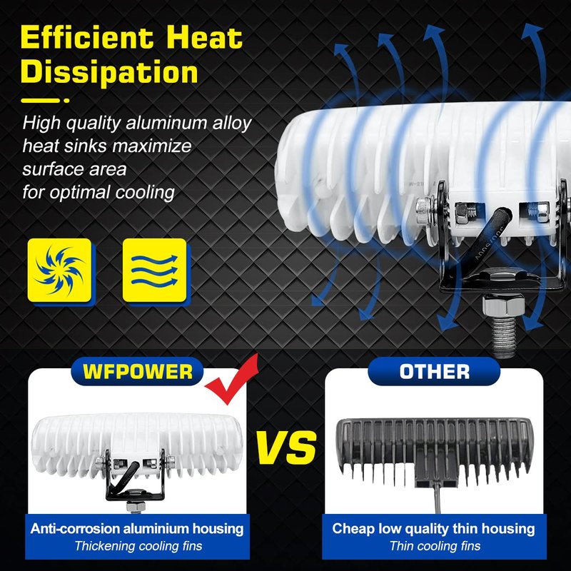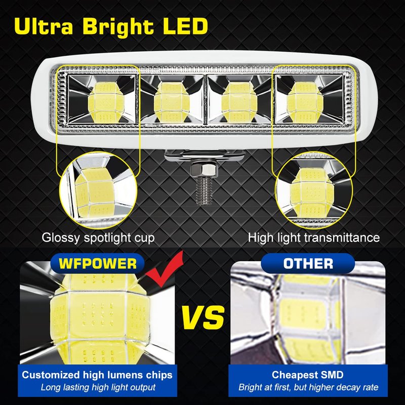 - White Spreader Light : This light come with 4pcs super high brightness COB intensity 6500K LEDs with white aluminum alloy housing. WFPOWER led T-Top spreader dock lights gives out ultra bright for your sailing with better visibility.