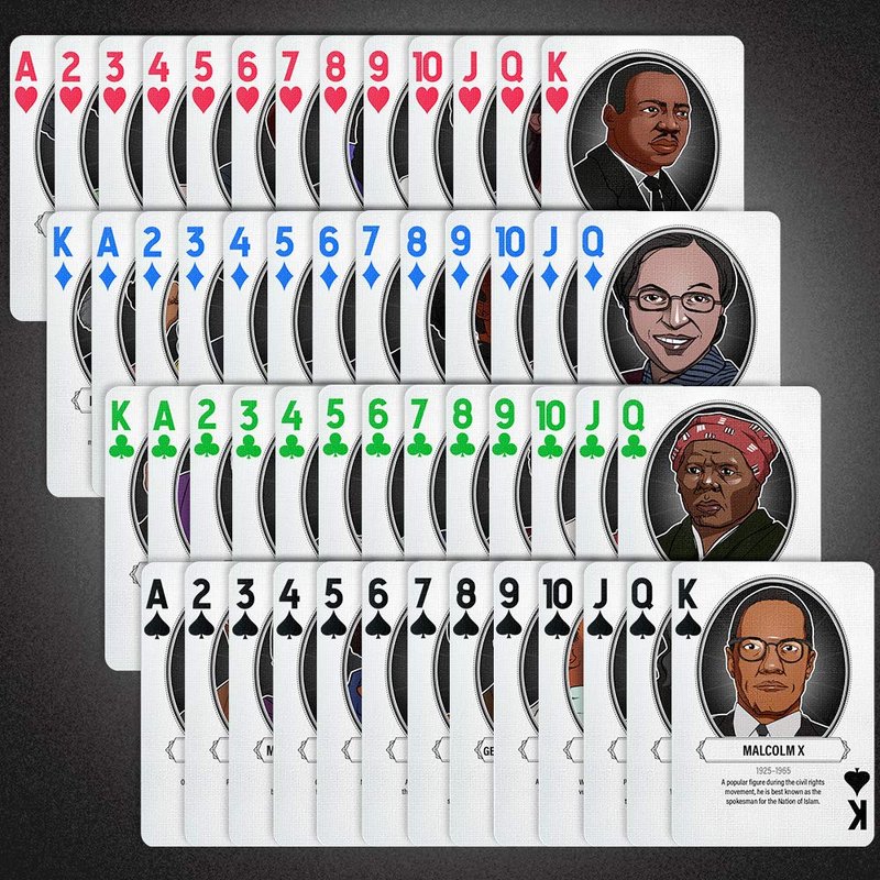 Famous African Americans in History Playing Cards honors some of the most powerful African American people since the birth of the United States. These people include entertainers, activists, athletes, politicians, authors, comedians, to public figures.