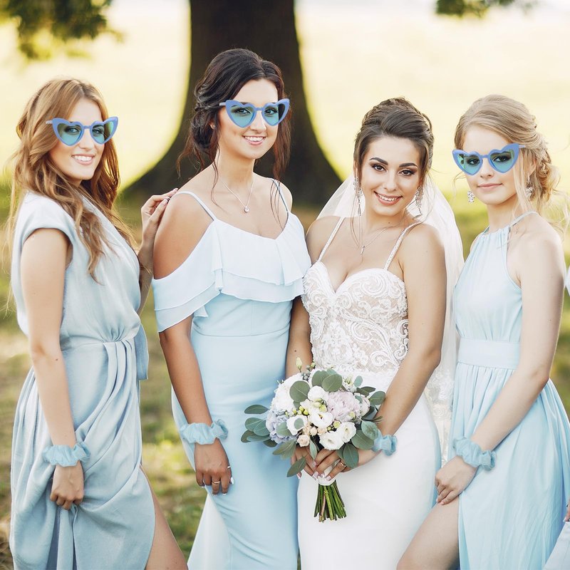 - The Package Includes - You will receive 6pcs heart sunglasses, 6pcs hair claw clips and 6pcs hair scrunchies, a total of 18pcs bridesmaid proposal gifts, sufficient quantity for your bridesmaids.