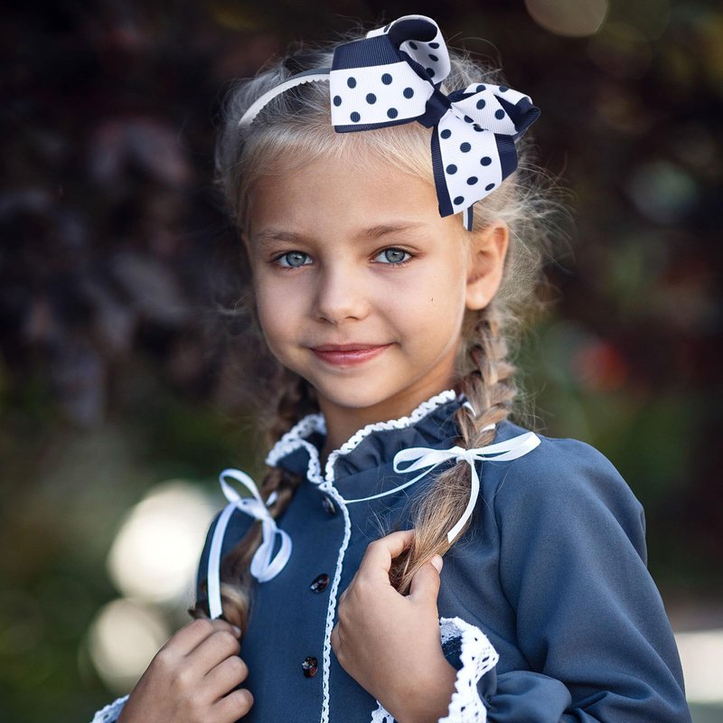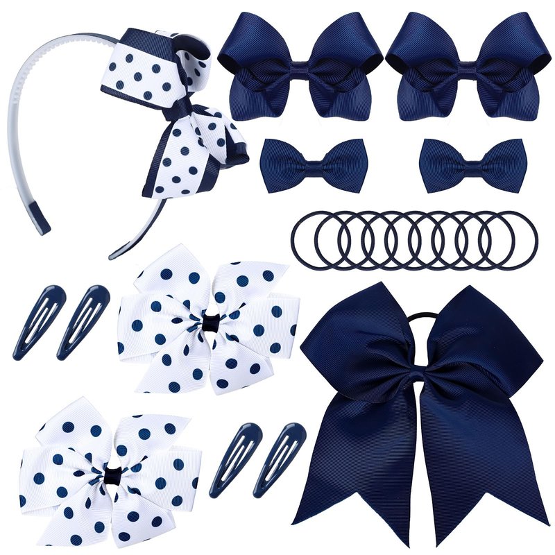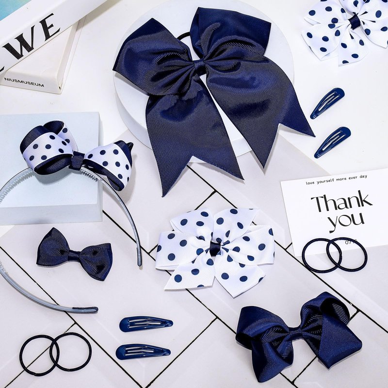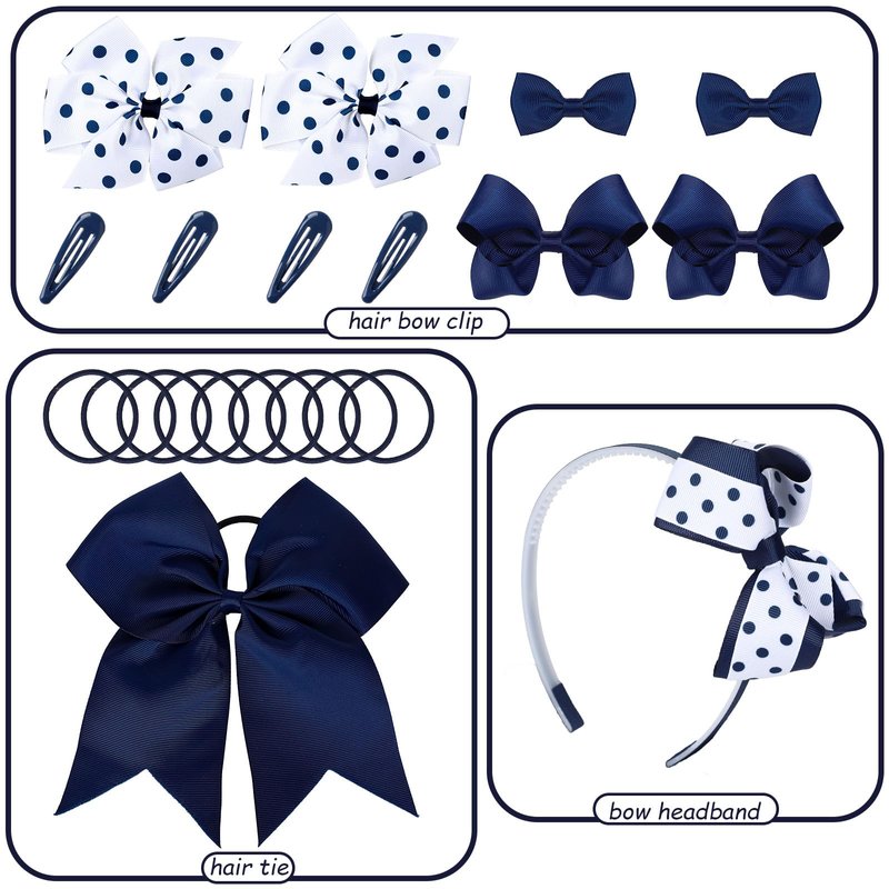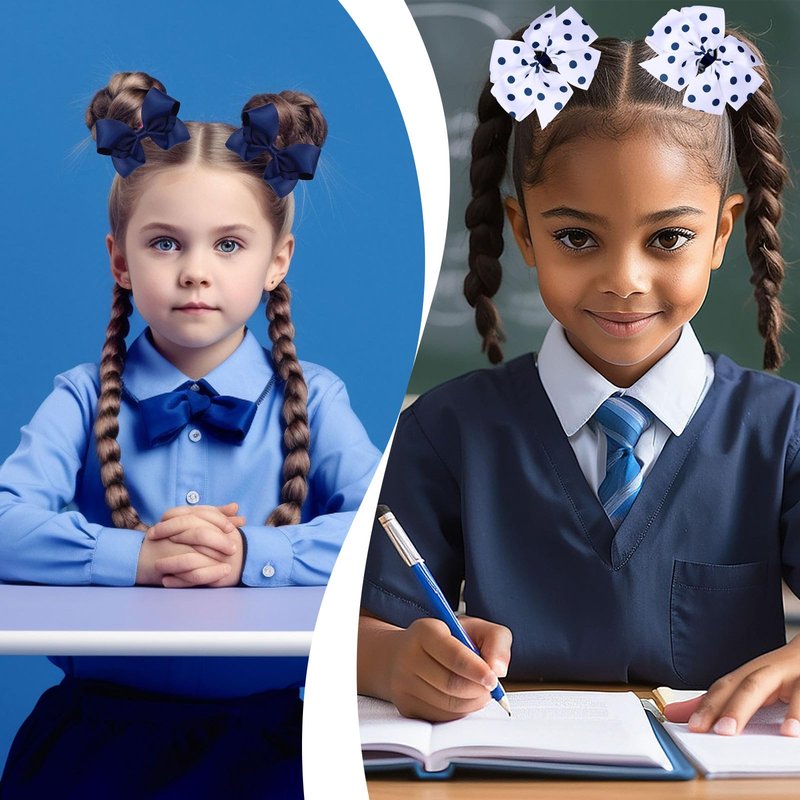 - Cute Design - Our hair bows set featuring school uniform theme with polka dot patterns design, come in navy blue and white color, chic and stylish, great supplies for girls’ hair accessories.