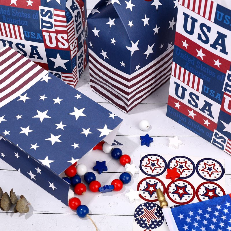 Whaline 36 Pack Patriotic Treat Bags with Tag Stickers American Flag USA Party Favor Bags Patriotic Candy Bags Red Blue Kraft Paper Gift Bags for Independence Day Party Supplies Gift Wrap