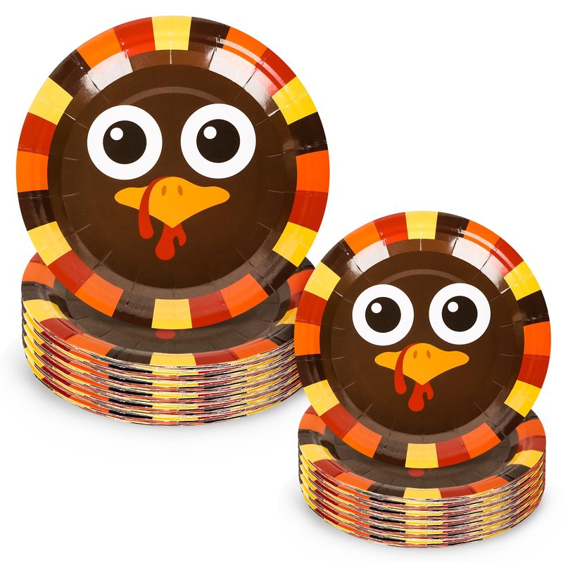 - Cute Design - Patterned with turkey expression in the middle of plates, bordered with classic fall colors, adorable and exquisite, quite suitable for thanksgiving party supplies.