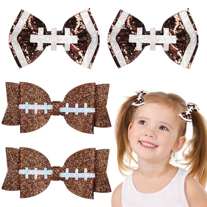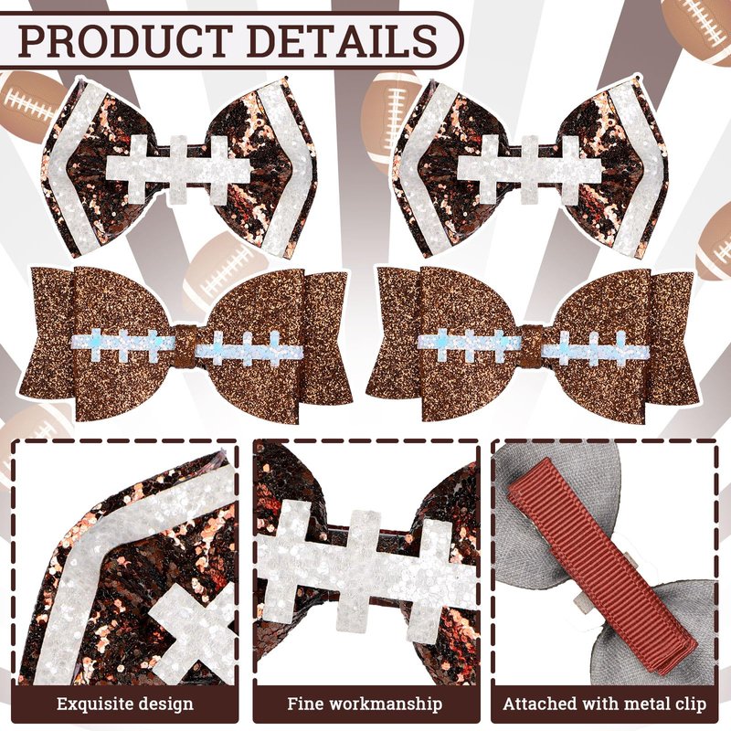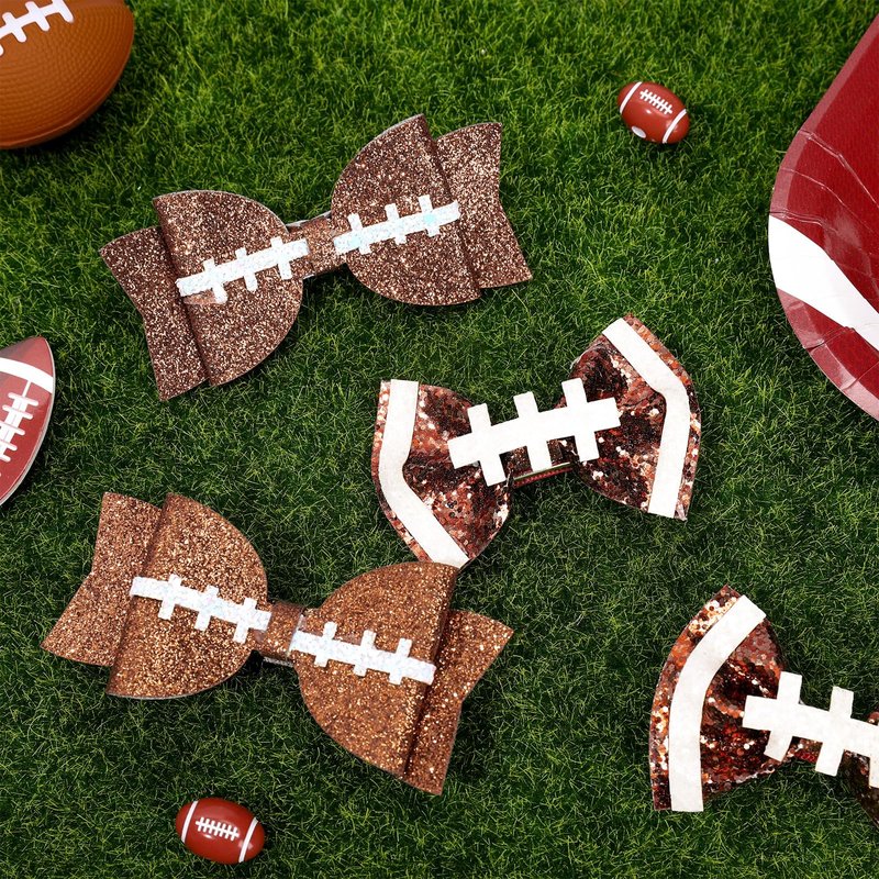 - Package Includes - 4pcs football bow hair clips in 2 styles, 2pcs for each style, sufficient for you to spare or replacement, meeting your different holiday dressing needs.