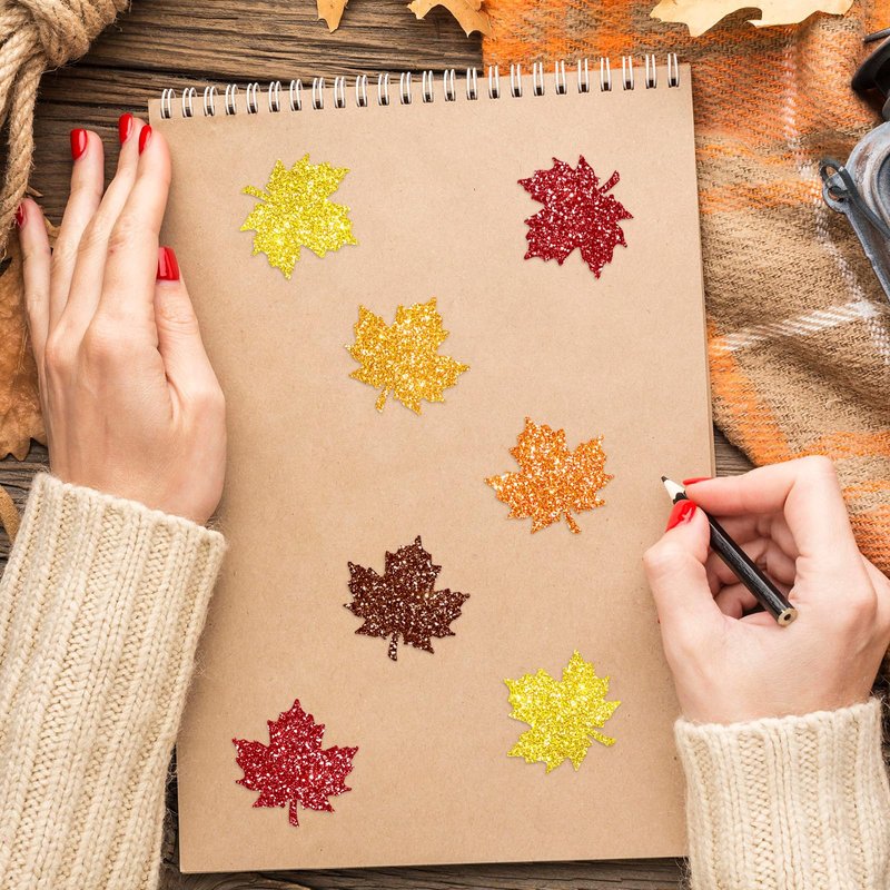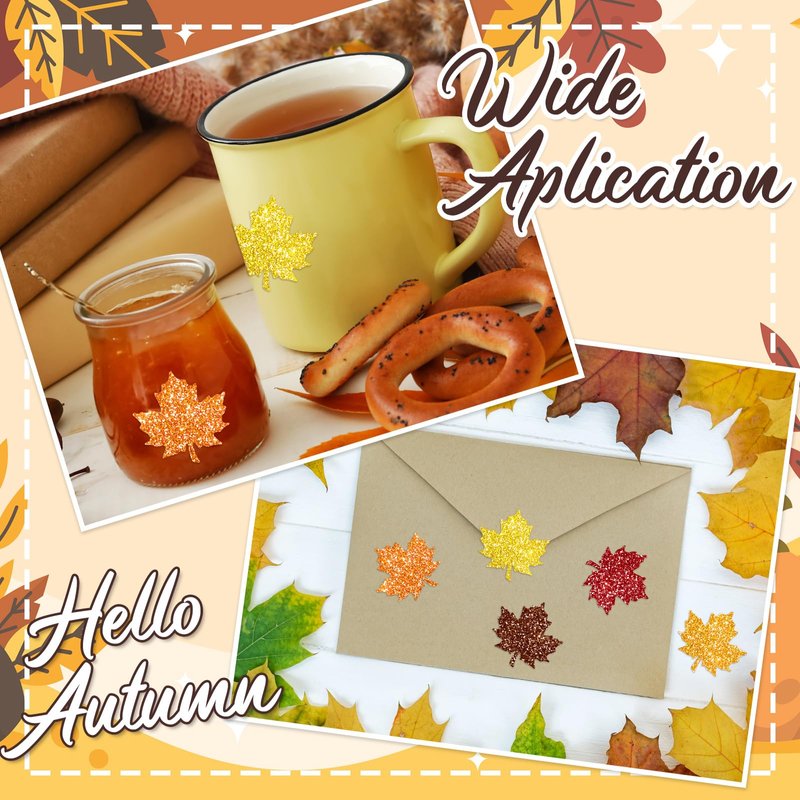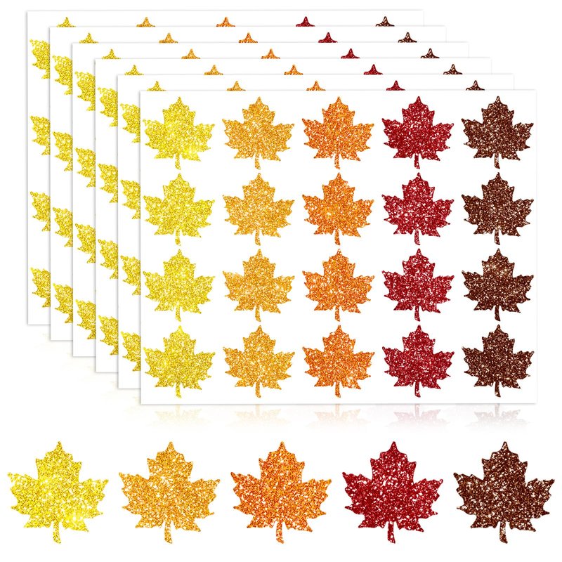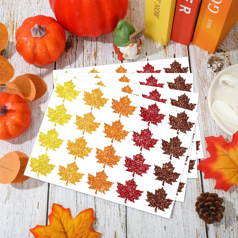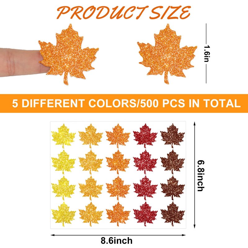 500pcs glitter maple leaf stickers, designed in 5 orange colors, festive and eye-catching, sufficient to meet your various needs for crafts and decoration, to add fun and charm to your life.