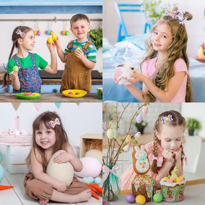 - Unique Design - Our hair bow clips are designed with Easter bunny, egg, carrot and chick, making the bow clips look more delicate and cuter, the bottom layer of the bow clips are crafted with glitter sequins, shiny and beautiful.