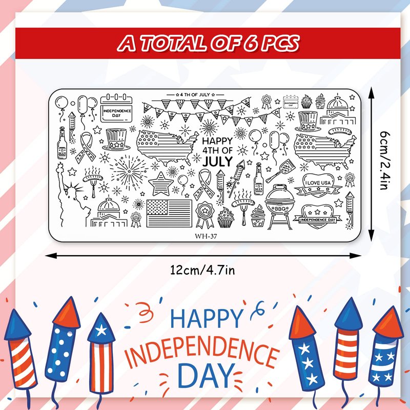 6 sheets patriotic theme nail art plates are completely enough for the whole holiday nail decoration and DIY, cost-effective and practical.