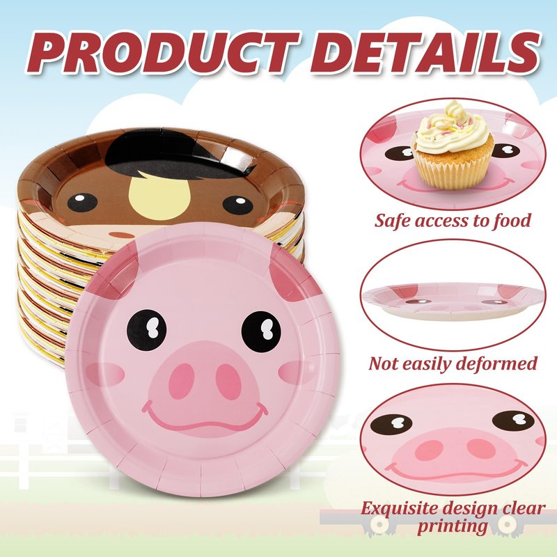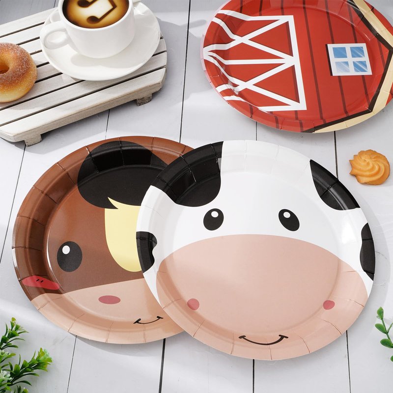 - Farm Animal Design - Featuring the theme of farm animals, our dessert plates are designed with patterns of cock, pig, cow, sheep, farm house and more, cute and fancy cartoon printings help to decorate your party table more attractive and funny.
