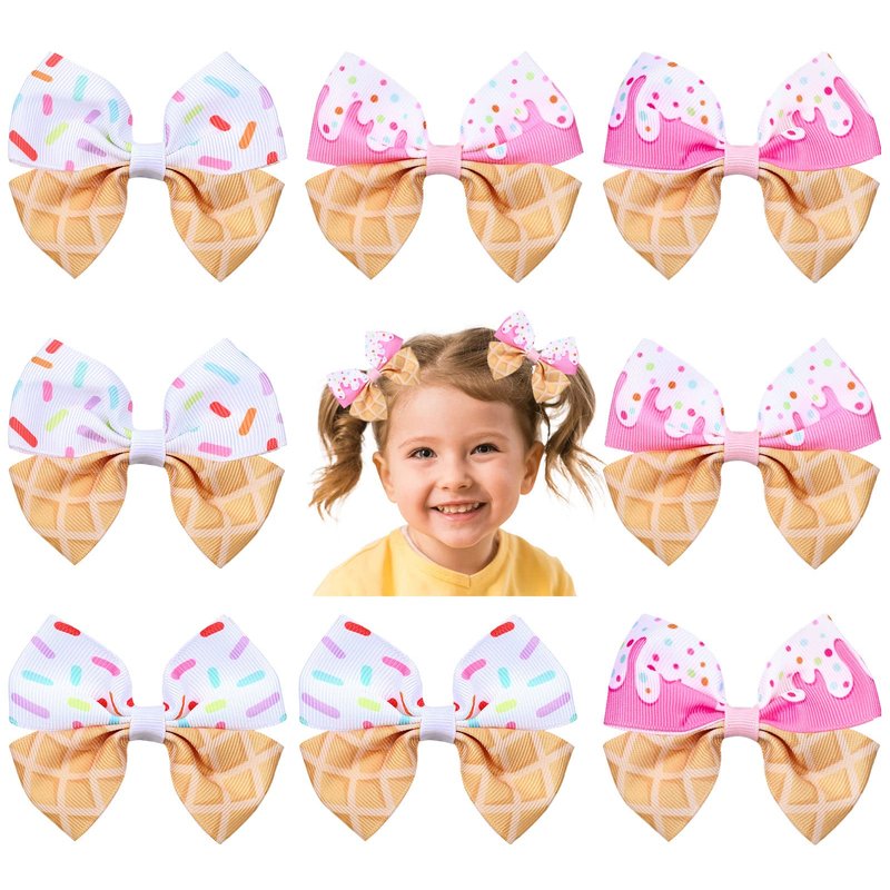 Whaline 8Pcs Ice Cream Bow Hair Clips Ice Cream Ribbon Hair Bow Barrette Summer Colorful Hairgrips Alligator Hair Clips for Girls Women Hair Accessories Birthday Party Supplies, 4 Design