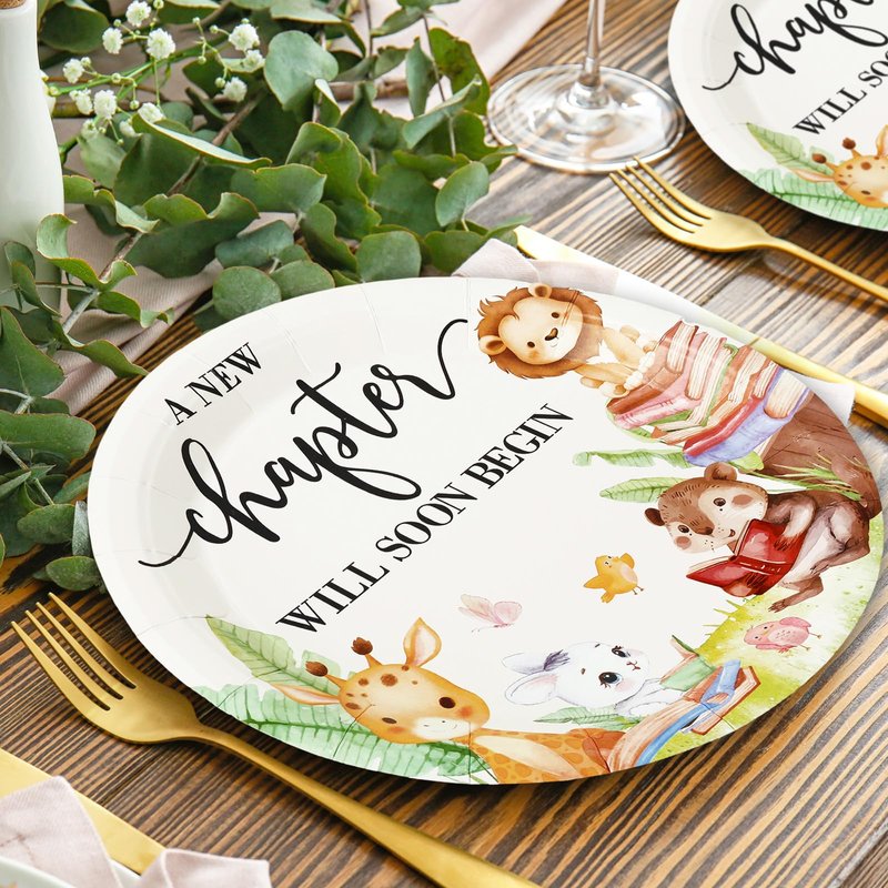 Whaline 96Pcs Storybook Baby Shower Party Supplies For 24 Guests A New Chapter Will Begin Soon Book Disposable Tableware Set Paper Dinnerware 48Pcs Plate 24Pcs Napkin Fork For Party Table Decor