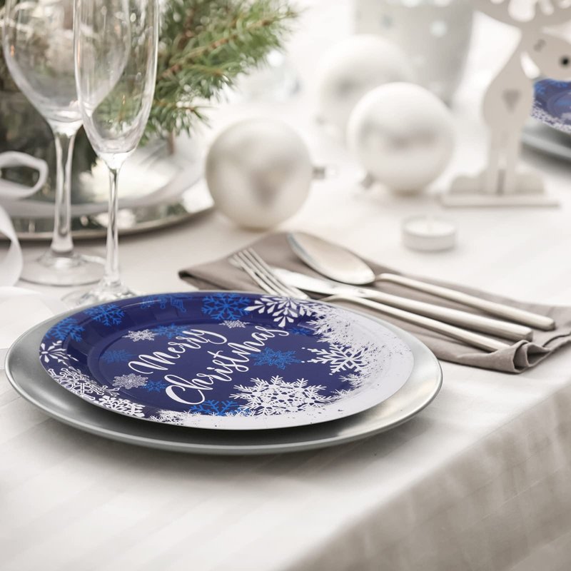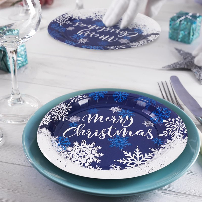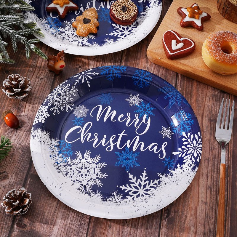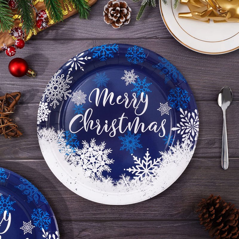 - Snowflake Design – Our paper plates are printed with various white and blue snowflake patterns, and in the center, there are letters Merry Christmas, the combination make the plates become more elegant and delicate, perfect got winter and Christmas holiday use.