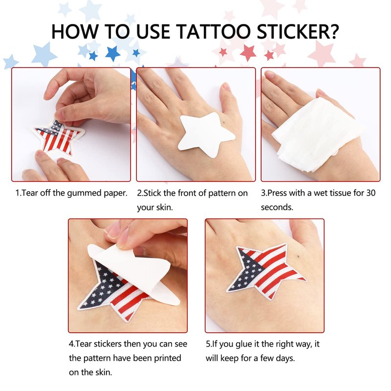 - Patriotic Designs - 8 sheet tattoo stickers have 4 designs, are all feature the theme of American flag, pattered with star, heart, truck, firework, hat, USA, flag and other holiday elements, rich varieties adding more festive feeling to your make up.