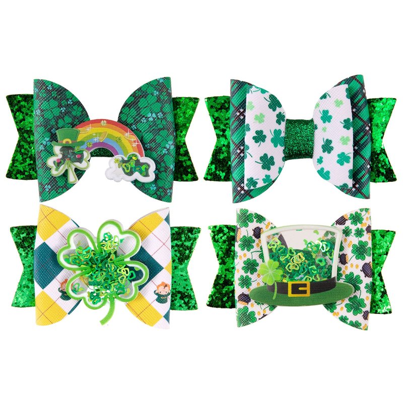 • What You Will Get - 4 pack St. Patrick's Day bow hair clips are included in the package, assorted designs make them beautiful hair accessories for girls and women.