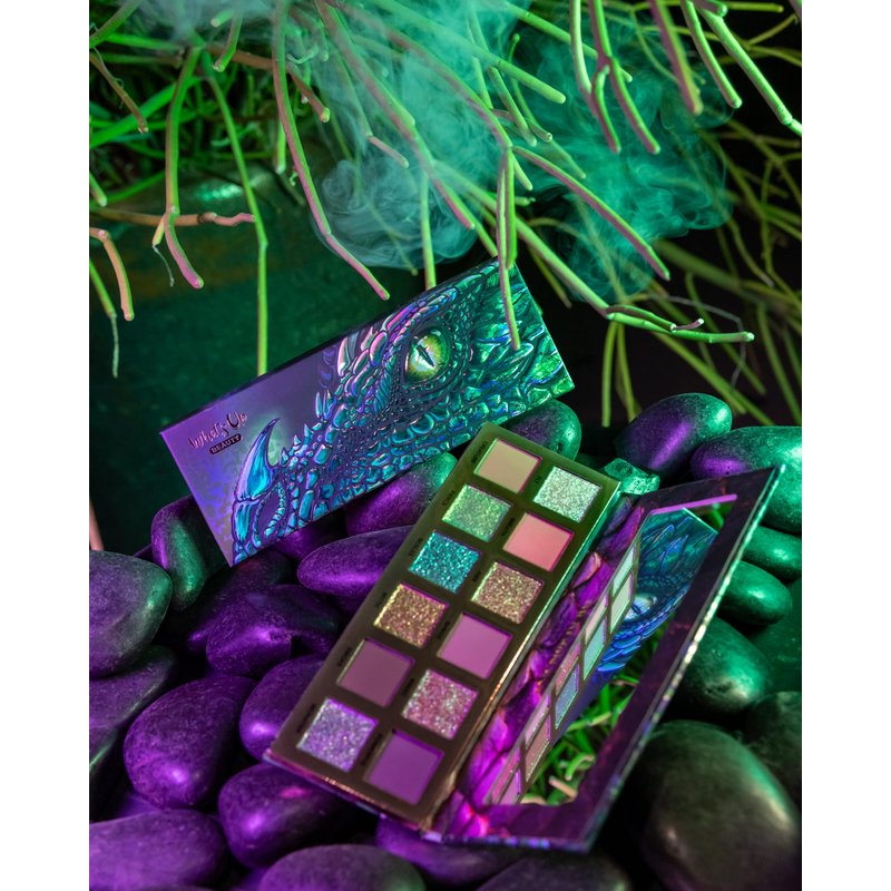 - Descend into the dragon's lair and prepare your eyes for a magical experience of fierce greens and ancient purples which await beneath! Bring out your beast within using sparkly multichromes and creamy mattes to transform your eyes into the fire you have inside. A dragon stares back at you from the cover of this palette which is a stunning work of art, deep embossing accent a holographic foil eye and scales giving them dimension which makes this travel friendly packaging feel bigger than it is.