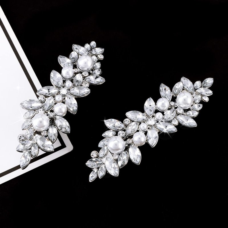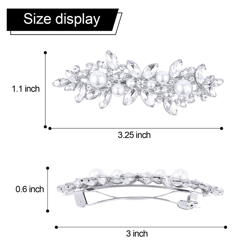 WHAVEL Pearl Hair Clips for Women, 2 PCS French Barrette Hair Clips Rhinestone Decorative Hair Accessories for Women Bride (Silver)