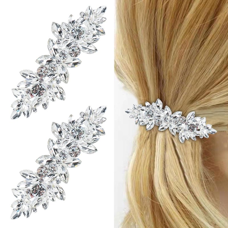 WHAVEL Rhinestone Crystal French Barrette Clips - Vintage Bridal Wedding Hair Pins and Accessories for Women, Bride, Bridesmaid (Silver)