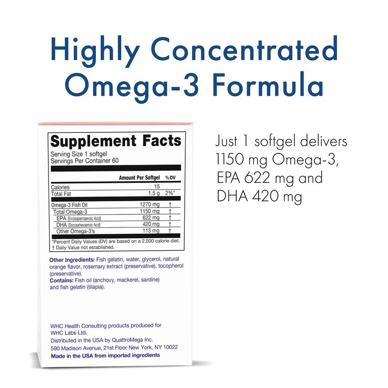 - High-quality supplement delivering a powerful dose of 1150 mg omega-3 from 1270 mg fish oil; Supports healthy heart, brain, vision and immune health