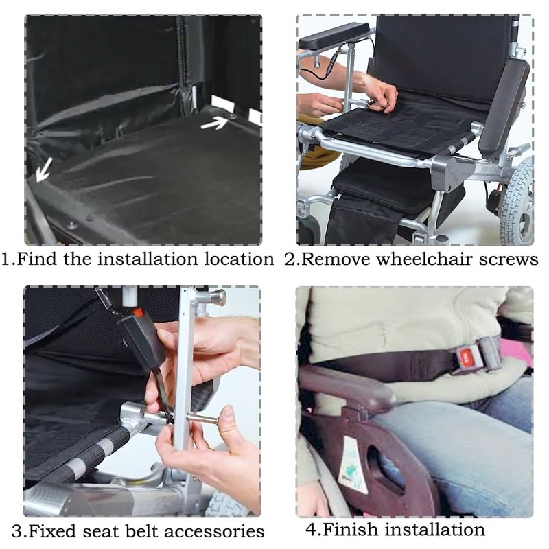 - No need to drill holes, use grommets to inastall. Remove bottom screws from left and right side of the wheelchair backrest, then insert screws through grommets on the belt.