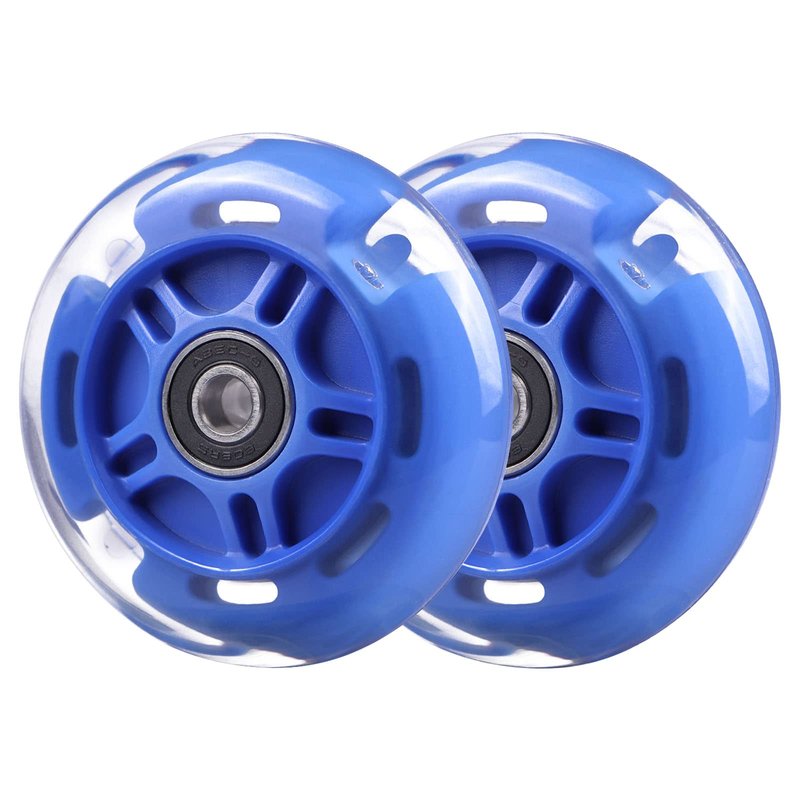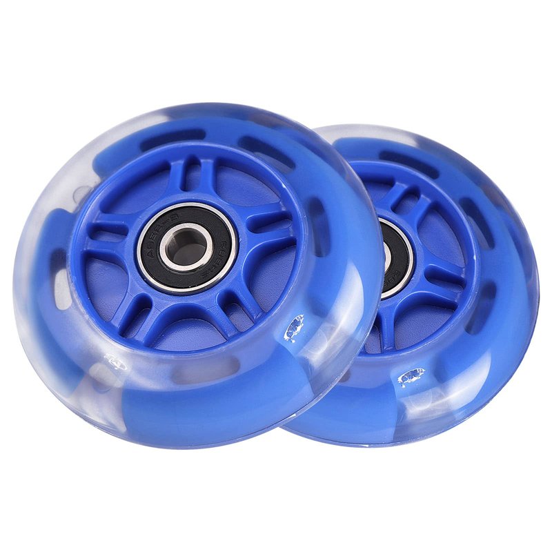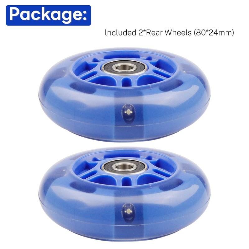 WHEELGOO Rear 80mm Light Up White Flashing 3-Wheeled Kid Scooter Replacement Wheels Compatible with Micro Globber Lascoota Kick Scooter, 2-Pack (Blue)