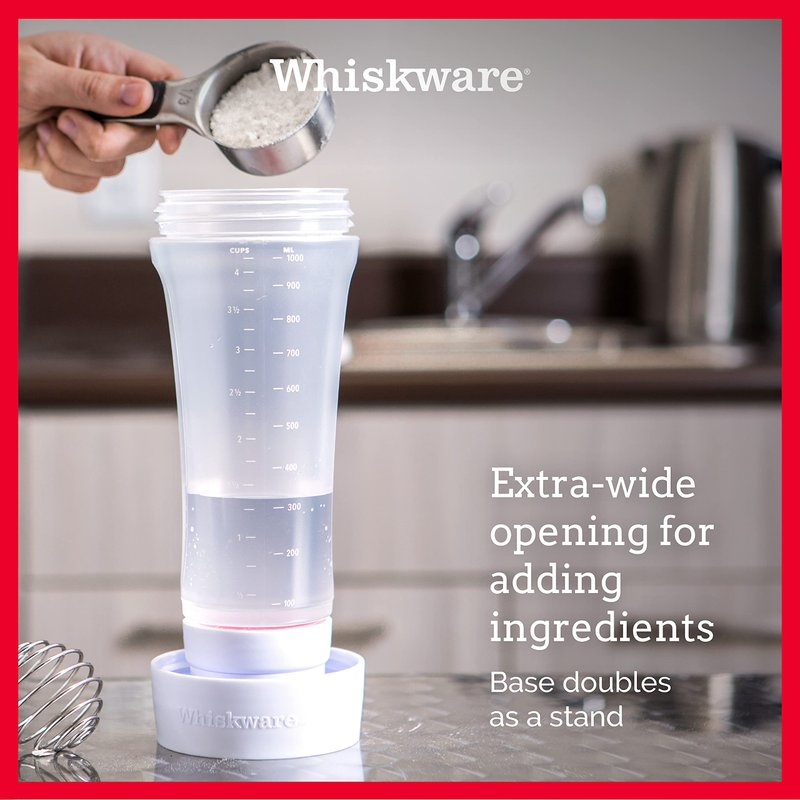 - A wide opening makes it easy to add ingredients, and the base doubles as a stand to keep the mixer stable while cooking; Look for the embossed logo on the base to ensure you are getting the authentic Whiskware pancake batter dispenser