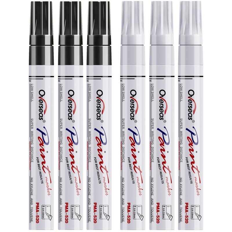 3 Pack White & 3 Pack Black Permanent Paint Pen, Oil Based Paint Marker
