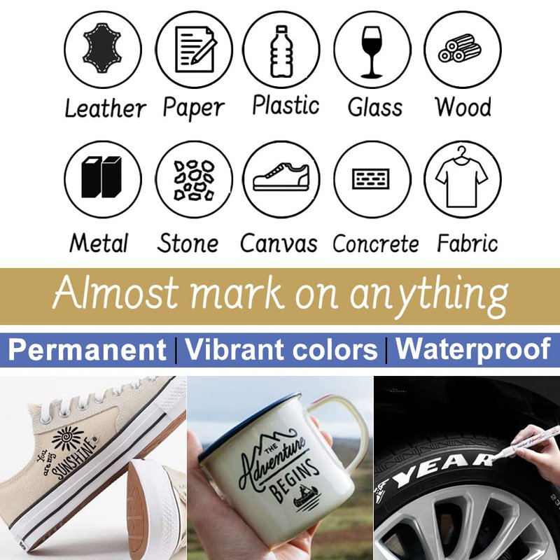 - 【Versatile】These permanent paint pen is the best choice to work on multiple surfaces. You can use on rock painting, ceramic, wood, leather, plastic, fabric, canvas, stone, glass, metal, chalkboard craft supplies, etc.