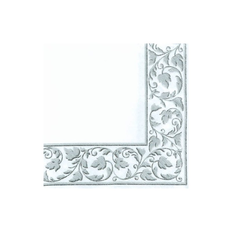 Premium White Beverage Napkins with Silver Trim 3 Ply 24 per pack