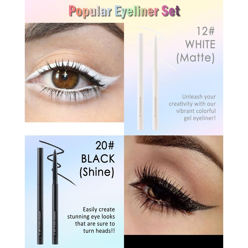 White & Black Gel Eyeliner,2 Colors Eyeliner Crayon Pencils,Waterproof Long Lasting Smudge-Proof Retractable Eyeliner Pen,Matte Cream Waterline Eyeliner for Mature Women Gel Delineador De Ojos(12+20)