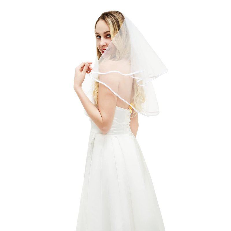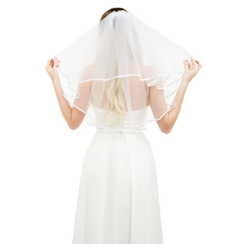 Package Included: 1 x White Bridal Veil Short 2 Tier Veil with white binding