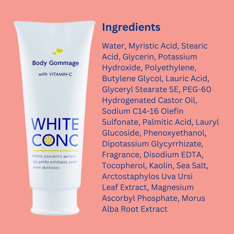 - Vitamin C for Moisturizing Exfoliator: Richly blended vitamin C derivatives known as skin care ingredients. Tone up to clear skin color as you continue to use.
