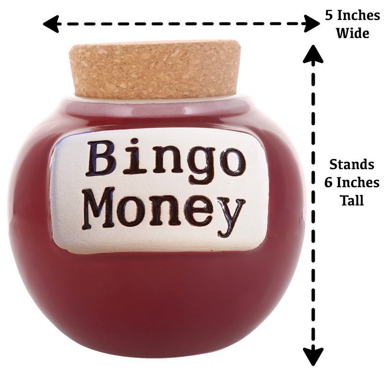 - Gift Boxed: Packed in a fun printed gift box, Bingo Money savings banks are perfect novelty gifts for women, fun Grandma gifts, unique Grandpa gifts, and are great Bingo accessories for women. With a removable lid, round robust shape, and ceramic construction, our piggy banks for adults has designs printed on both sides and is built for everyday use.