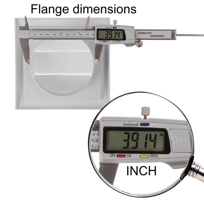 - Fits a 4-inch pipe diameter / vent opening // The outside dimensions of the cap cover plate is 5.8” x 6”