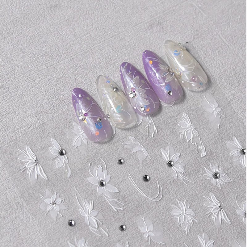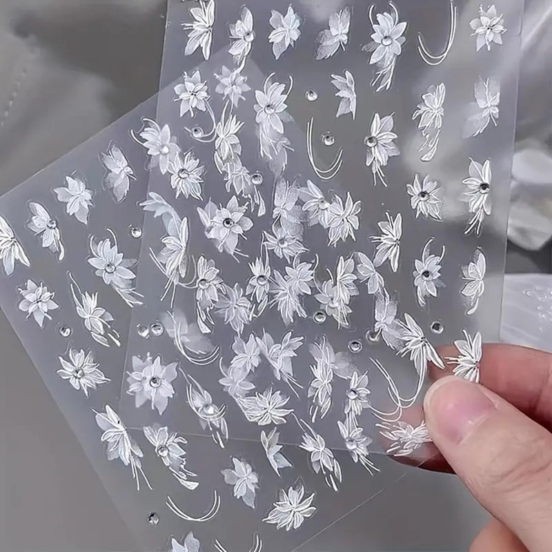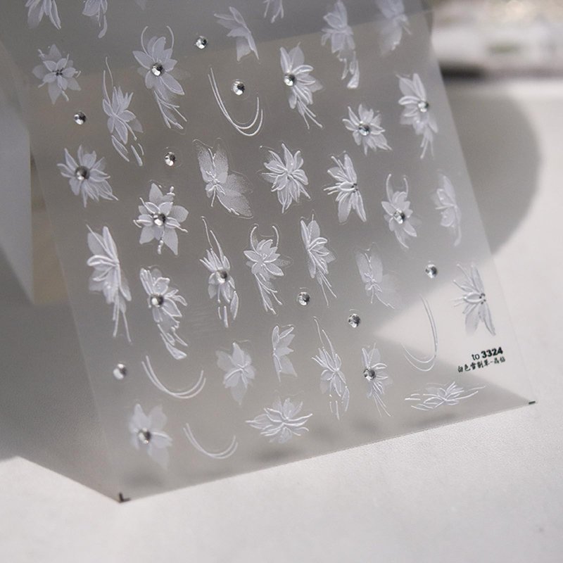 White Flower Nail Art Stickers Decals 5D Embossed Nail Decals Self Adhesive Diamond Flower Nails Stickers Spring Flower Nails Transfer Decals Floral Nails Supplies for Women Nail Art Decorations 1pc