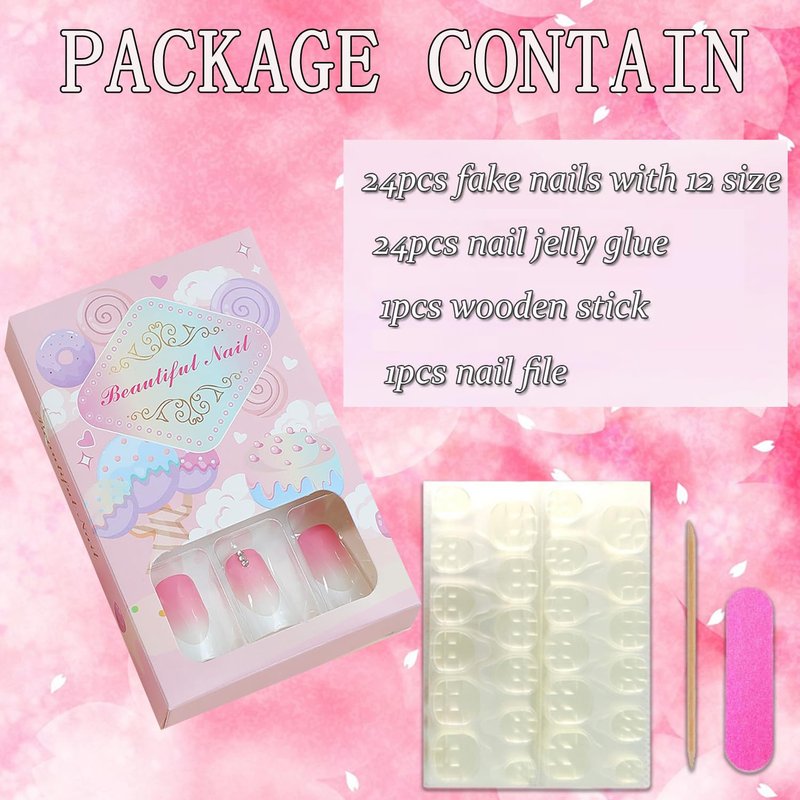 - 【Reused】If you use jelly adhesive nails tabs to fix false nails, it can be easily removed without affecting the nails for repeated use, but the nail glue sticker is not as good as liquid glue, if you want to keep it for a longer time, you need to use liquid glue(Cannot be reused).