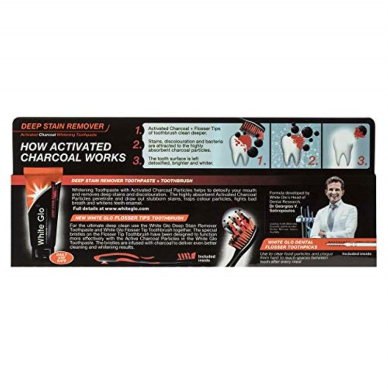 White Glo Deep Stain Remover Whitening Toothpaste + Charcoal Infused Flosser Tip Toothbrush, 5.2 Ounce