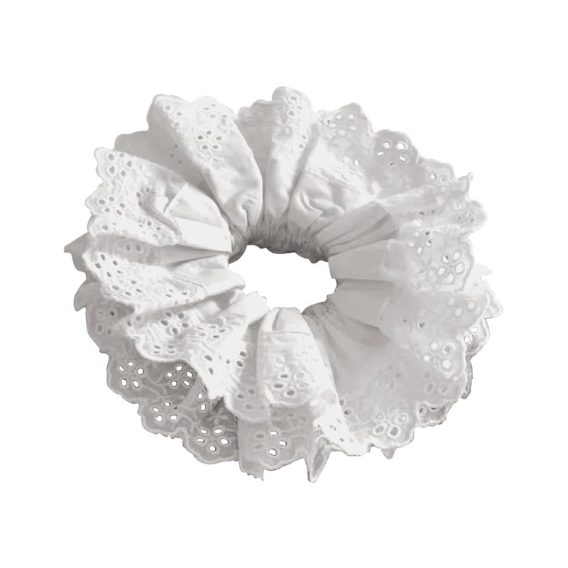White Hair Ties for Women - Hair Scrunchies Girls 1-Piece Set - White Lace Design - Premium Fabric Ponytail Holder Hair Tie,Hair Accessories