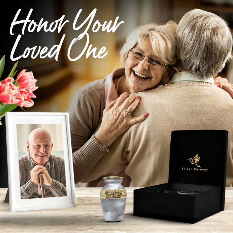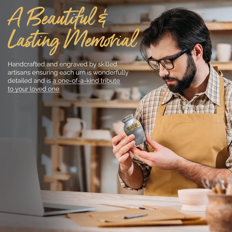 - High quality & durable urns: This beautiful white keepsake urn is solid and made of high-quality brass. The intricate ash urn design is handmade by highly skilled craftsmen using traditional time-honored techniques. You can be rest assured that this small memorial urn for human ashes will last for generations.