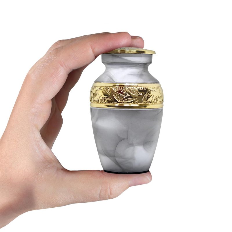 - Beautiful keepsake urn white: Give your cherished one the love they deserve. Our white marble print ashes urn has been handmade with love and care. Each mini keepsake urn has a threaded screw top ensuring the remains of your loved one are kept secure. This beautiful small keepsake urn for ashes will honor your loved one forever.