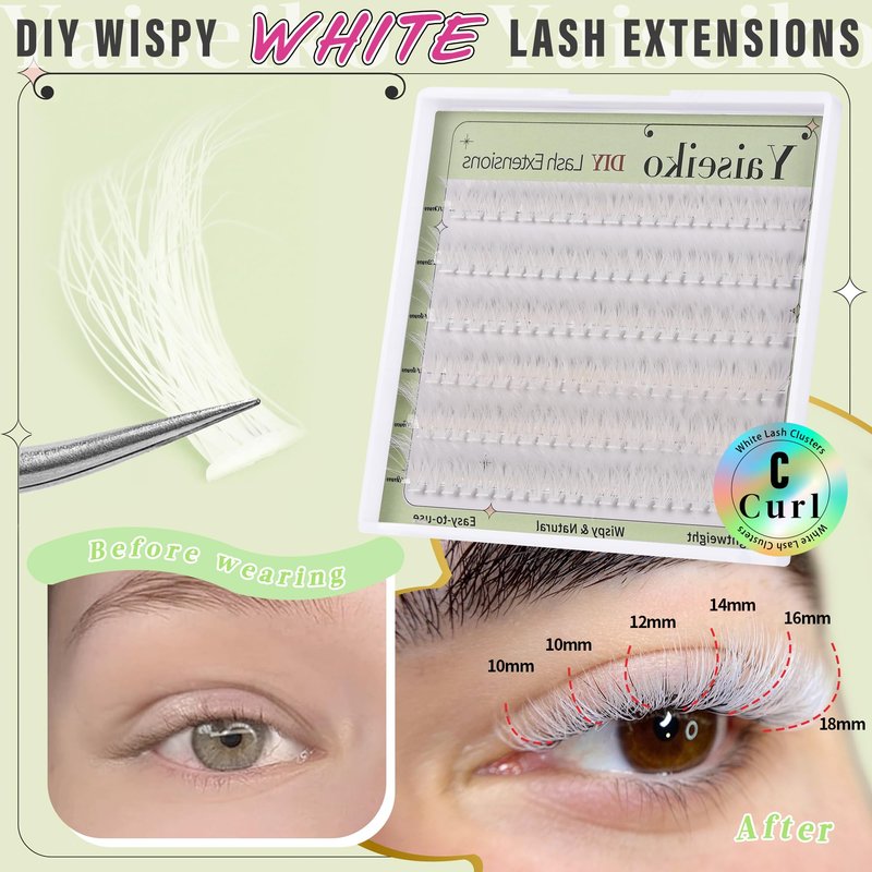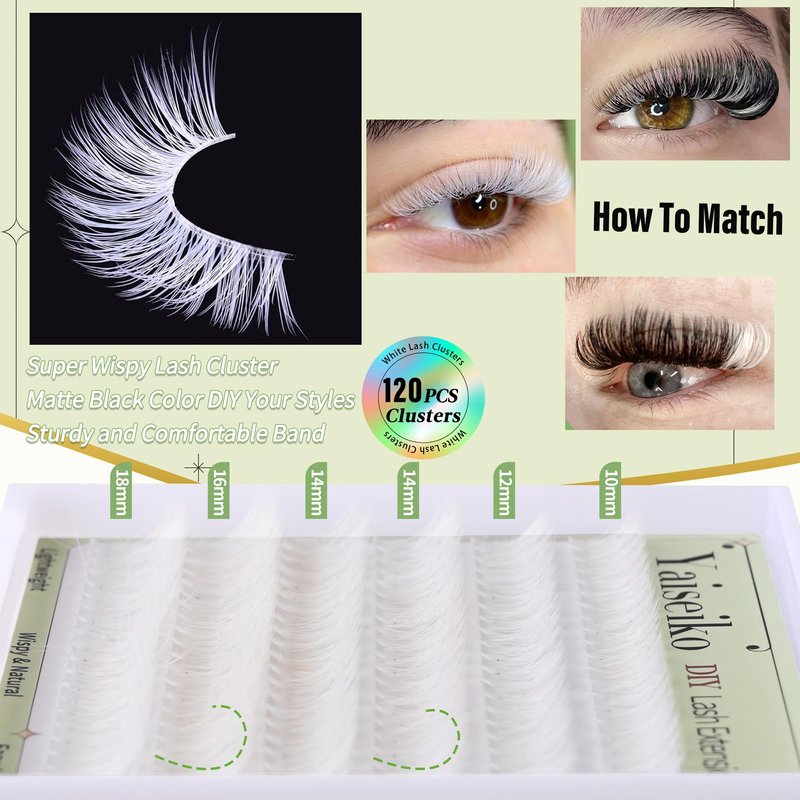 - 【Wispy Lashes Clusters 5 Different Lengths】120pcs cluster eyelashes with 5 length ( 10/12/14/16/18mm) clusters lashes, fluffy and volume cluster lashes extension is suitable for girls with various eye types. These white lashes cluster are perfect for Halloween, Christmas parties and parades