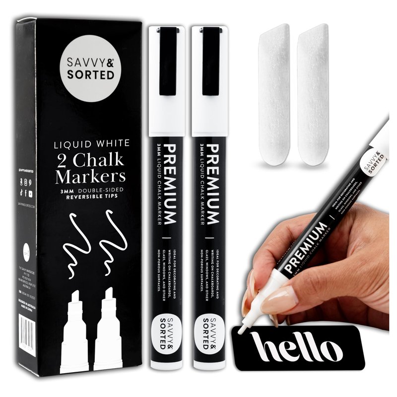 - NO SMUDGE, RESIDUE, OR FRUSTRATION - Savvy & Sorted Fine Tip Chalk Board Marker Pens are dust free and leave no residue behind for beautiful Chalk Art