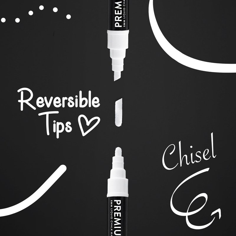 - DUAL TIP FOR VERSATILE CHALK ART - Fine Point Chalk Markers with a Reversible Chisel or Bullet Tip used for Mini Chalkboard Signs, Chalk Labels, Business Signage, Window Paint Pens for Glass, or teachers classroom as Blackboard Dry Erase Markers