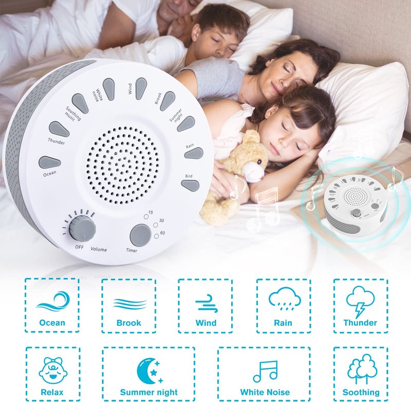 - [9 SOOTHING NATURAL SOUNDS] White noise, Ocean, Thunder, Soothing music, Wind, Brook, Summer night, Rain, Relax. It helps you to block out distractions and create a perfect environment for sleep, relaxation or concentration. It’s very easy to select the sounds you want.