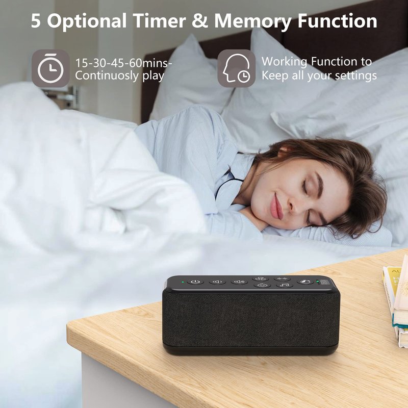 - ⏲️【Auto-off Timer & Memory Function】-This sound sleep machine can be set to play continuously or automatically turn off after 15,30,45,60 min. Choose the suitable timer according to your different needs such as for a nap or night sleep or focusing during work. And the memory function will keep your last set of timer, sound, and volume when restarted. Each button has its own function to avoid the complicated operation caused by repeated use, extremely a breeze to set up even for kids or elders.