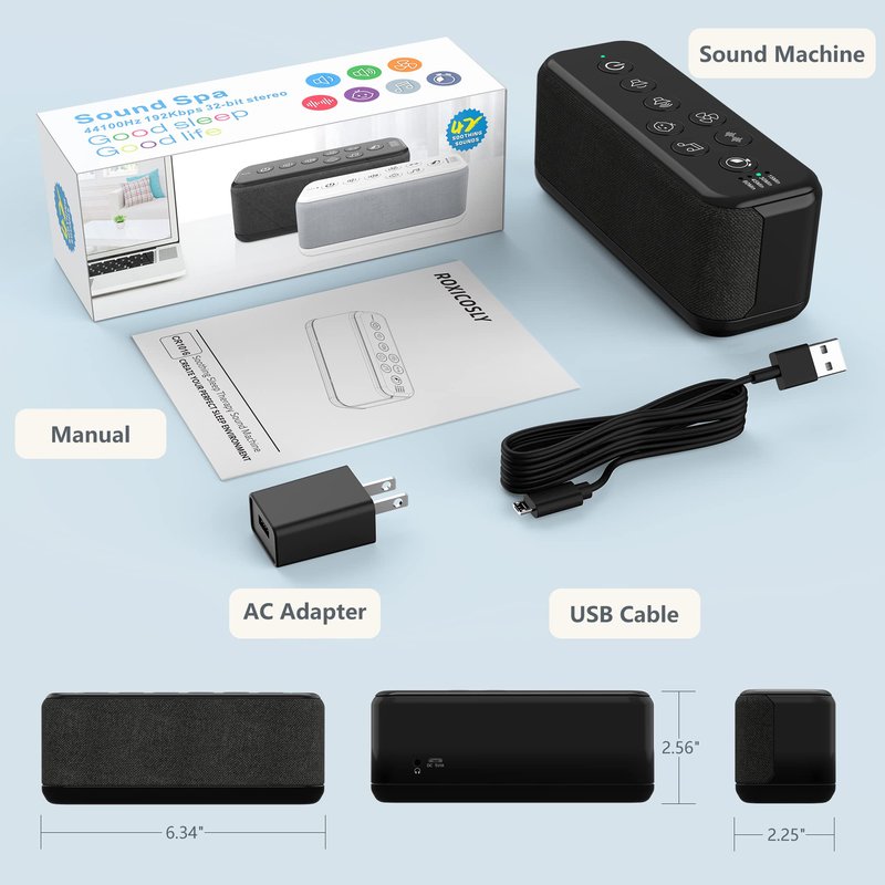 Roxicosly White Noise Sound Machine with 42 High Fidelity Soothing Sounds, Portable Noise Maker for Adult Kids Elders