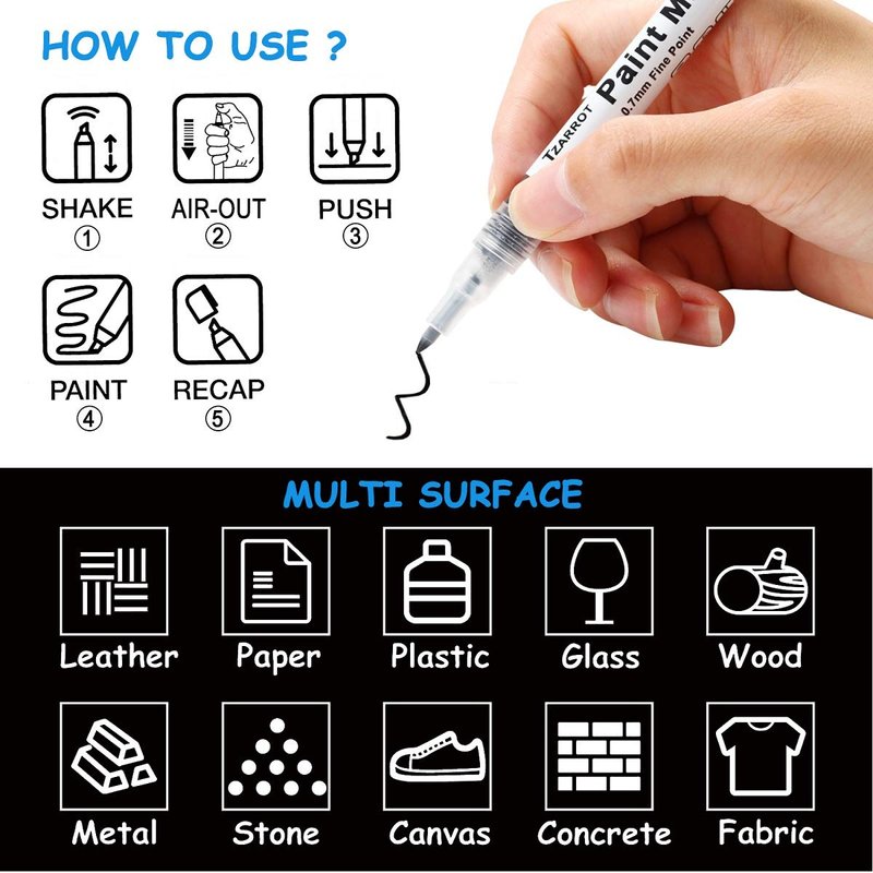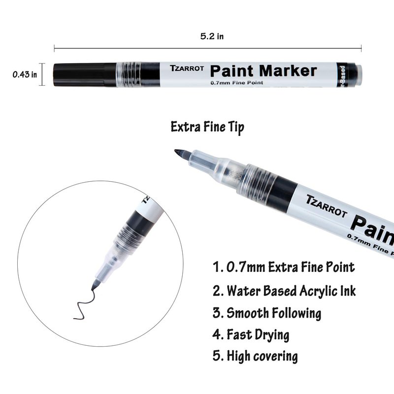 - 【Multi-Surface Using】 TZARROT water based acrylic paint markers are suit for a variety of surfaces, such as rock, fabric, wood, stone, leather, metal, ceramics, paper, glass, plastic and more.