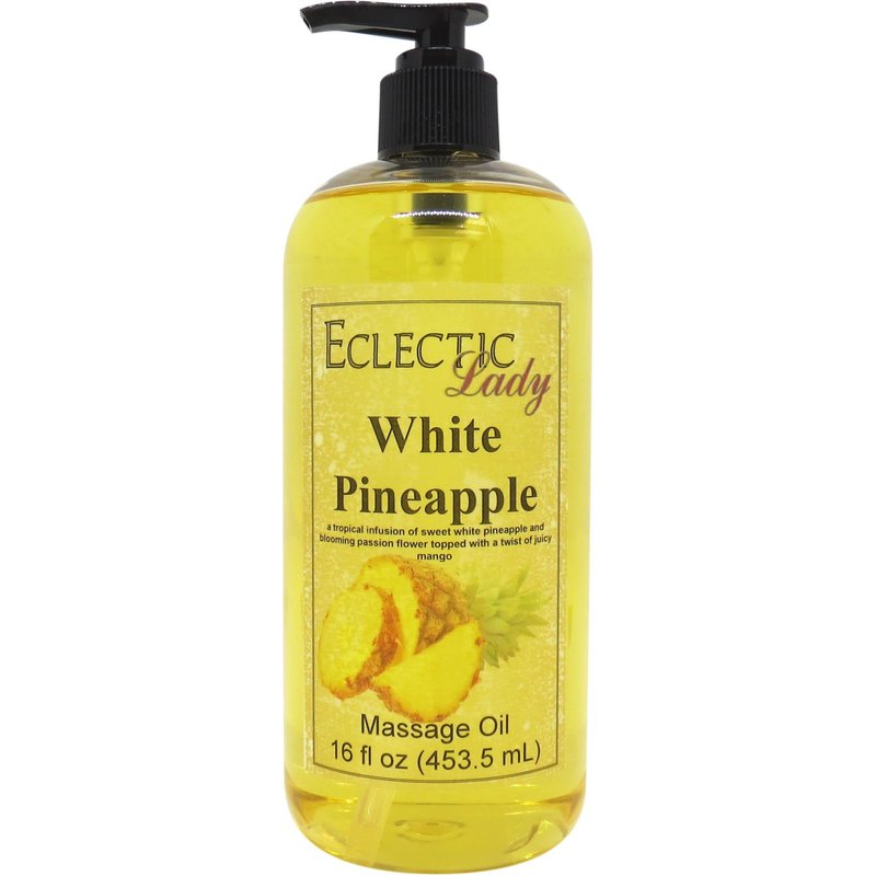 White Pineapple Massage Oil, 16 oz, With Sweet Almond Oil and Jojoba Oil, Preservative Free, Perfect for Aromatherapy and Relaxation