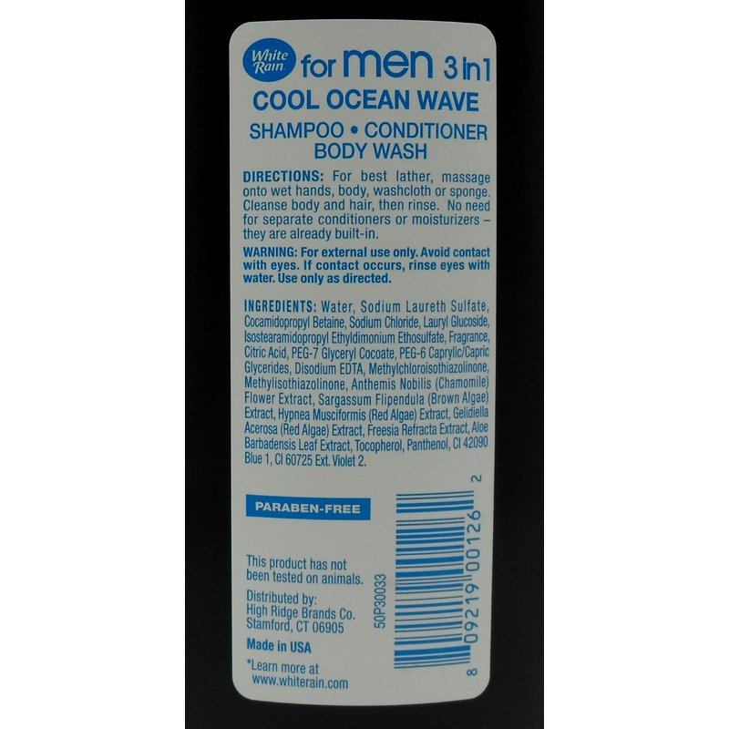 White Rain For Men 3 in 1 Shampoo + Conditioner + Body Wash, Cool Ocean Wave, 18 Fluid Ounces