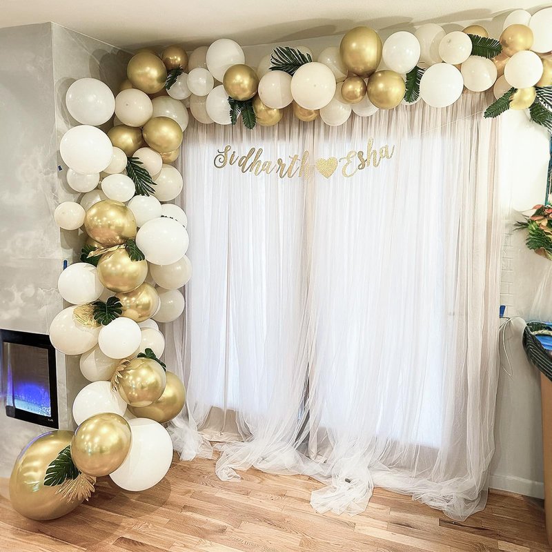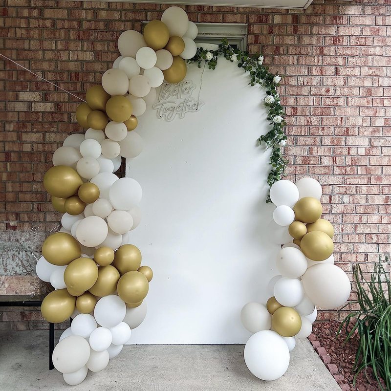 - White Gold Balloons: 60Pcs 12 inch balloons and 1 white ribbon set. Includes 20pcs metal gold balloons, 20 matte white balloons, 20pcs sand white balloons.